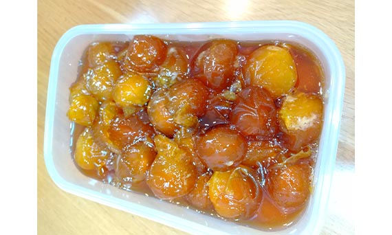鍋に水50ml、自然派Style種子島洗糖、梅を入れて火にかける。 砂糖が溶けたらウーロン茶を加えて落し蓋をし、ごく弱火でアクをとりながら40~50分ほど煮る。