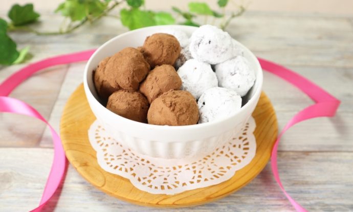 ②の粗熱が取れたらラム酒を加えて混ぜ合わせる。冷蔵庫でかたくならない程度に冷やす。12等分にし、スプーンなどで丸めバットに並べて、再び冷蔵庫で冷やす。