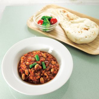 フライパンにオリーブ油大さじ1を熱し、玉ねぎを加えて炒める。しんなりして茶色くなるまで炒めたら一旦取り出す。オリーブ油大さじ1を足しにんにく、しょうがを炒め香りが立ったら豚ミンチを加えて炒める。肉の色が変わったらにんじんを加えて1~2分炒め、じゃがいもを加えてさっと炒める。トマトを加え、玉ねぎを戻し入れる。