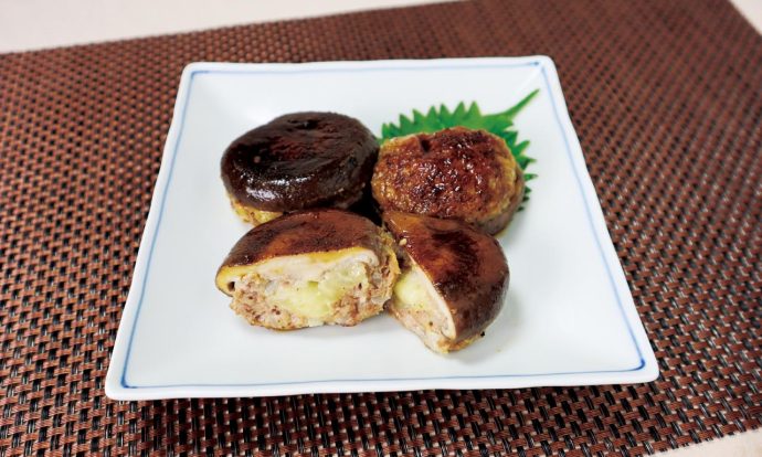 フライパンにごま油を熱し、①の肉だねの面を下にして焼く。焼き色がついたら返して、Bを加えて蓋をして約5分煮る。蓋をとり、煮汁が少なくなるまで煮る。