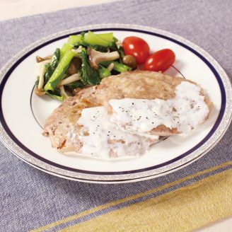 豚モモロールステーキ オクラソースがけ