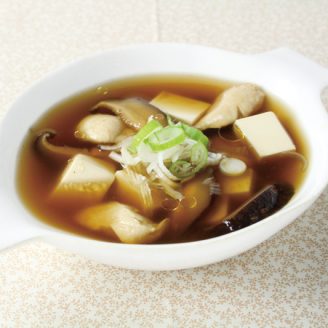 ②にしいたけの戻し汁、しいたけ、つぶしておいたトマトの水煮を入れ、水分が少なくなるまで煮込む。Aで調味する。