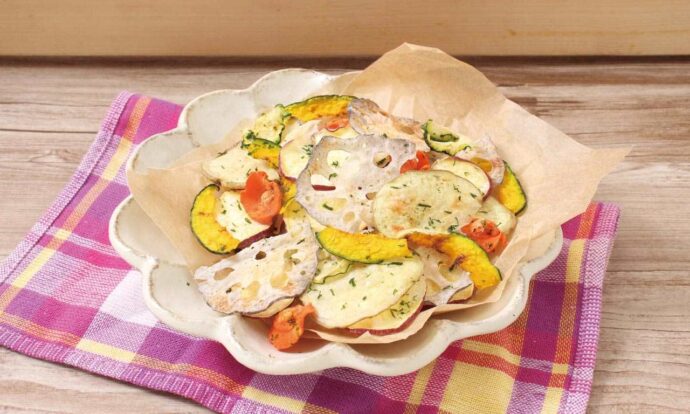 キッチンペーパーなどで水気をよく切って、オーブンシートを引いた耐熱皿に重ならないように並べて塩を振る。