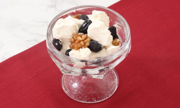 黒豆は煮汁をしっかりきっておく。クリームチーズを1cm角にカットする。くるみはから煎りする。